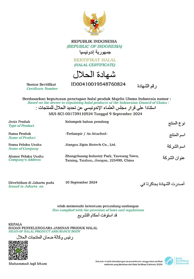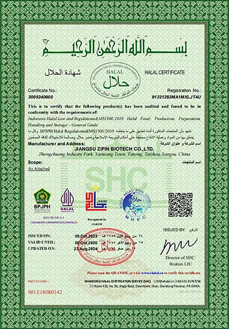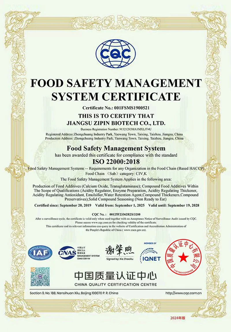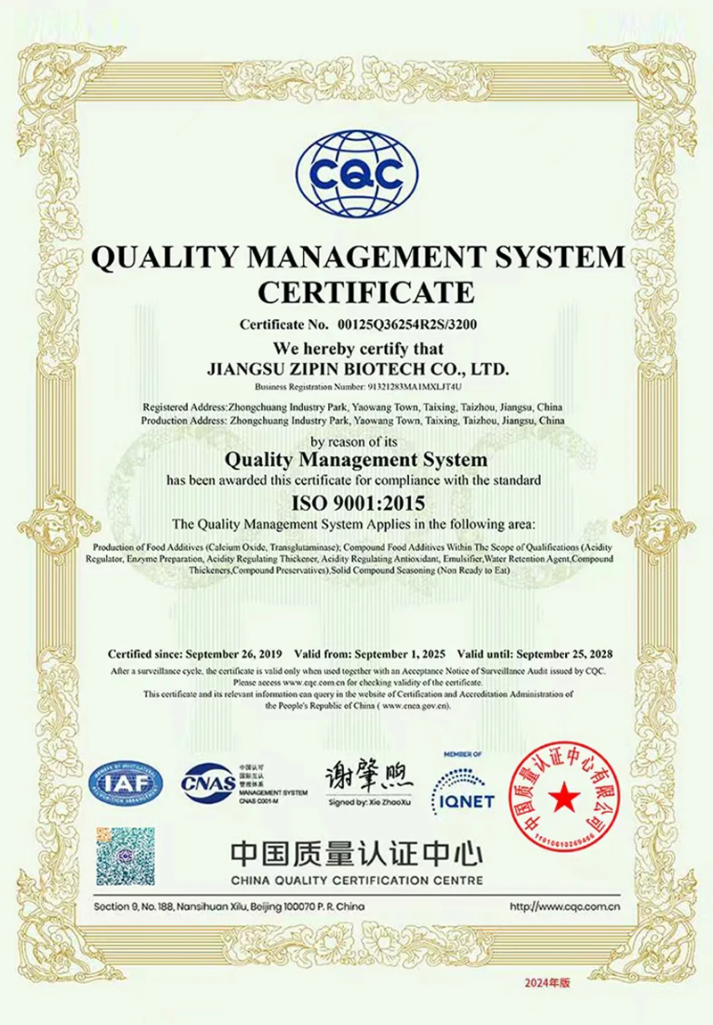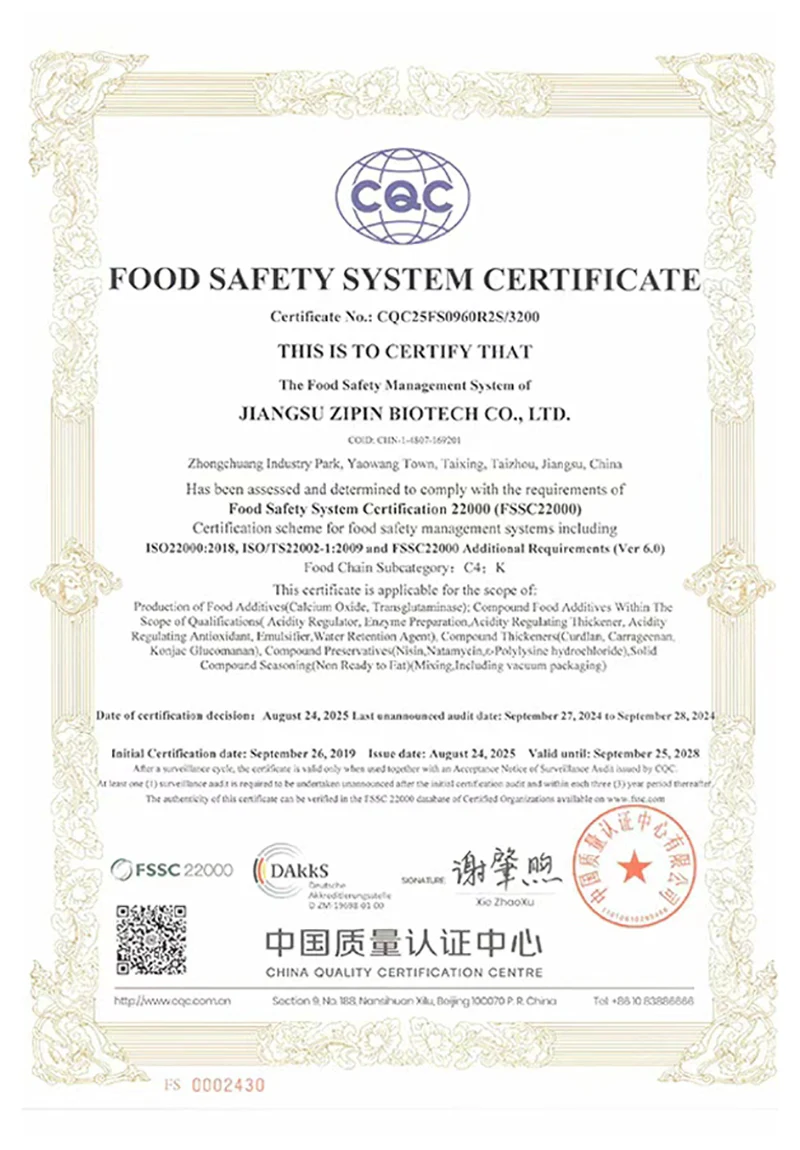जिआंगसू झिपिन बायोटेक कं, लि. 20,000㎡ क्षेत्र व्यापून, 2016 मध्ये स्थापित केले गेले. एक आधुनिक खाजगी उपक्रम म्हणून, आम्ही आता मुख्यत्वे R&D, उत्पादन आणि खाद्य पदार्थांच्या विक्रीमध्ये गुंतलो आहोत. आमची मुख्य उत्पादने आहेतट्रान्सग्लुटामिनेज, कर्डलन, ε-पॉलिसीन, Nisin, Natamycin आणि इतर अन्न additives.